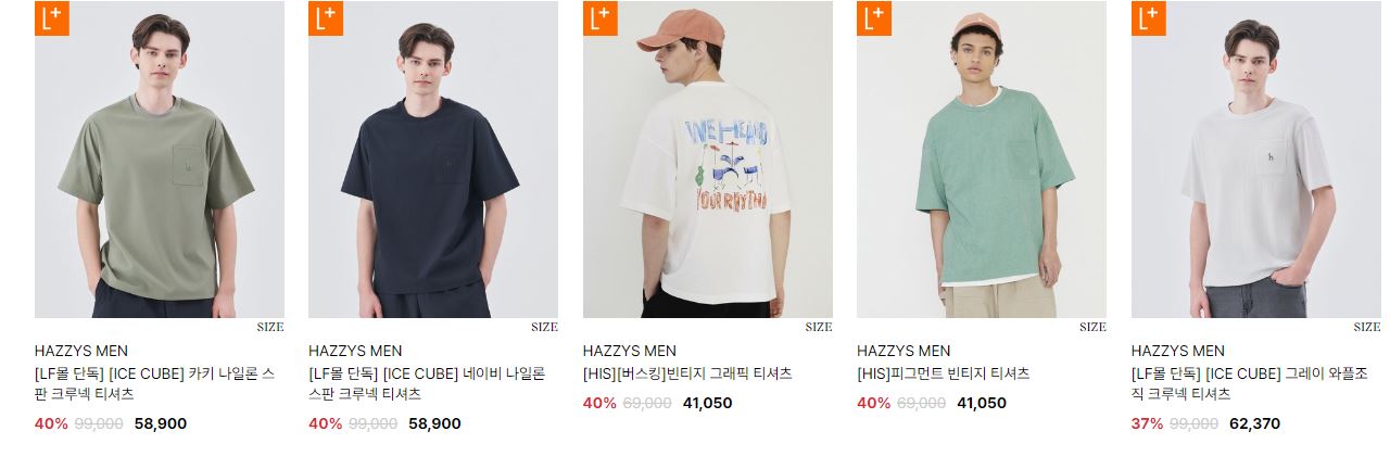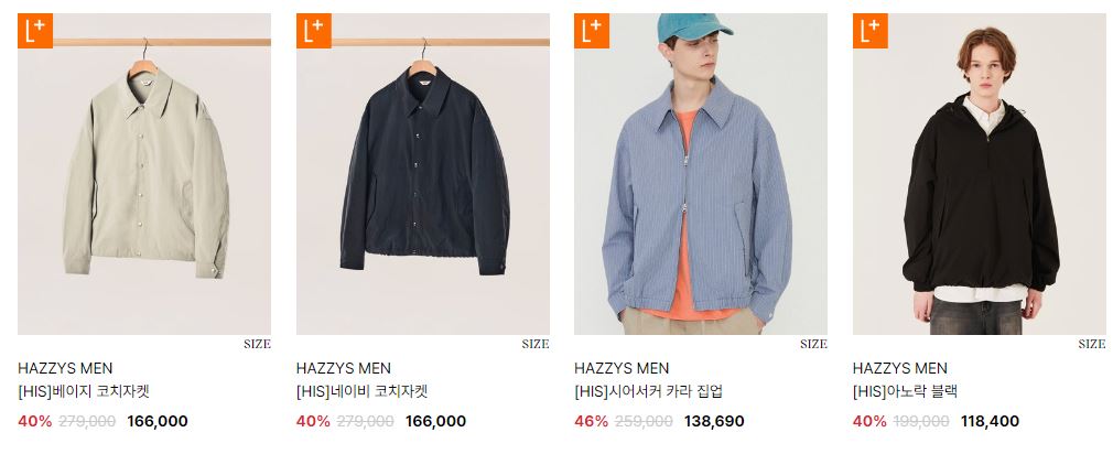 할인 품목 : 자켓, 티셔츠, 팬츠 등