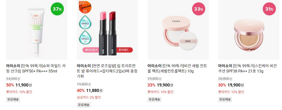 아이소이 다양한 제품을 할인 판매하네요.