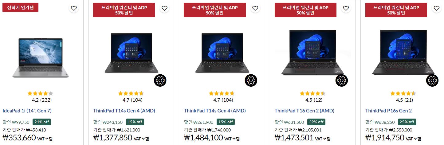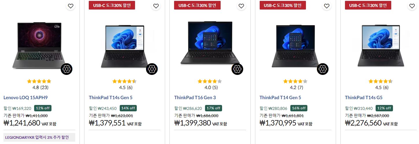 레노버 다양한 제품을 할인 판매하네요.