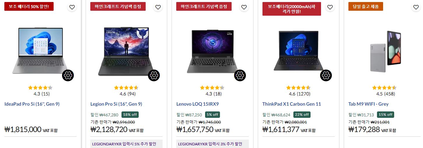 레노버 다양한 제품을 할인 판매하네요.