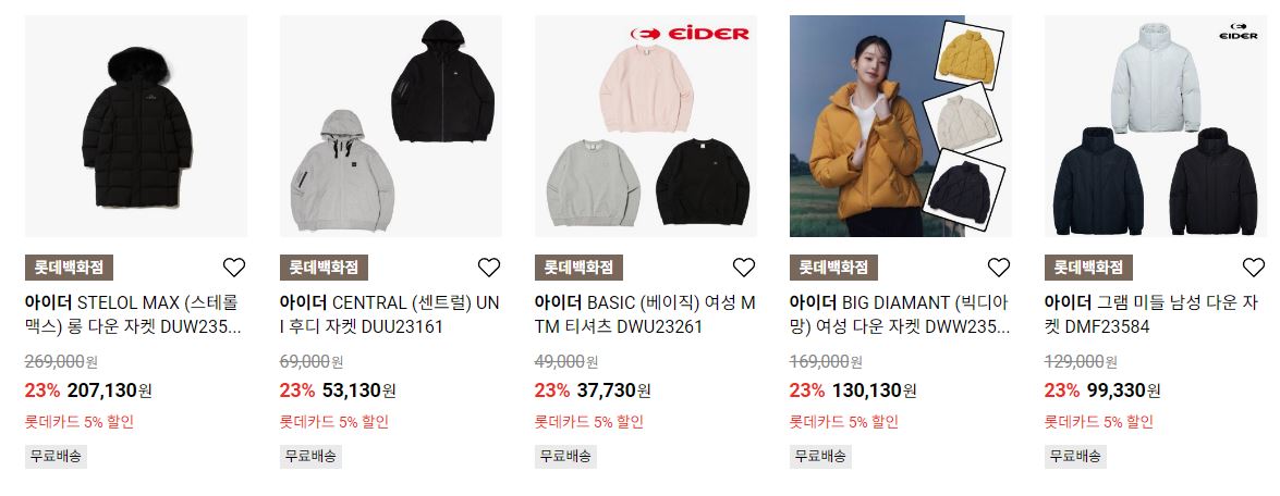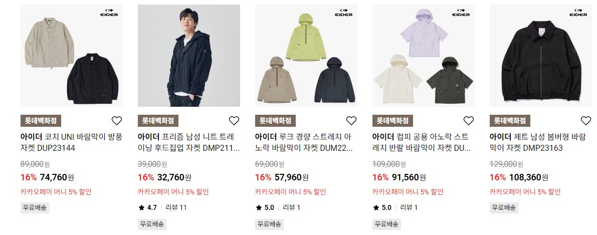 할인 품목 : 자켓, 점퍼, 팬츠 등
