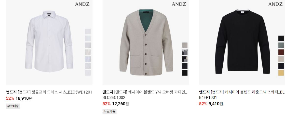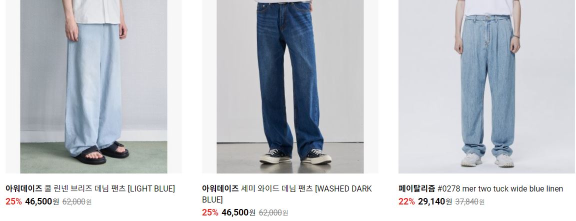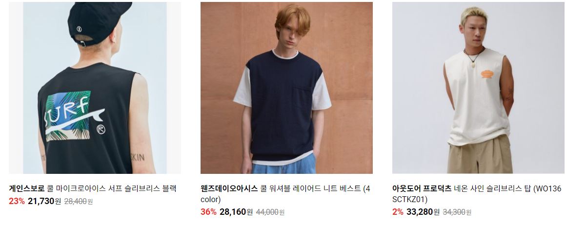 할인 품목 : 티셔츠, 팬츠, 가디건 등