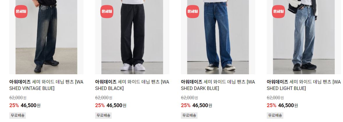 할인 품목 : 티셔츠, 팬츠, 가디건 등