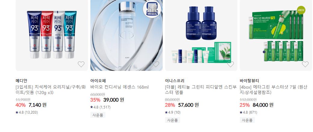 할인 품목 : 치약, 샴푸, 수분크림 등
