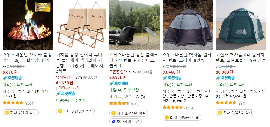 할인 품목 : 운동화, 의류, 캠핑용품 등