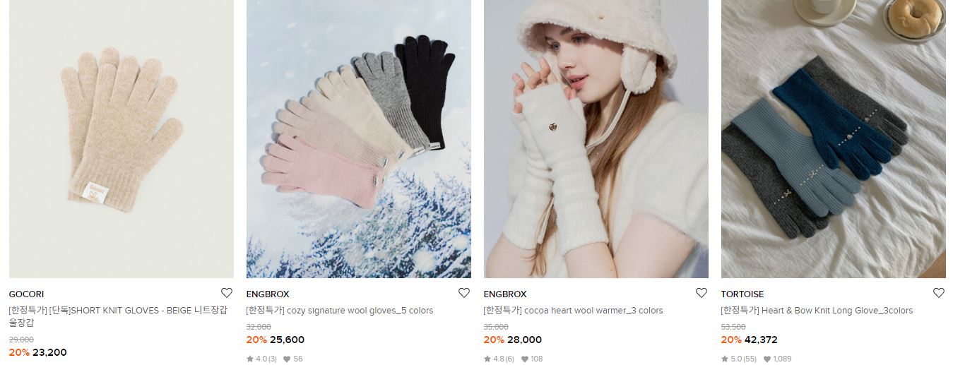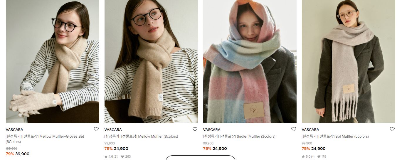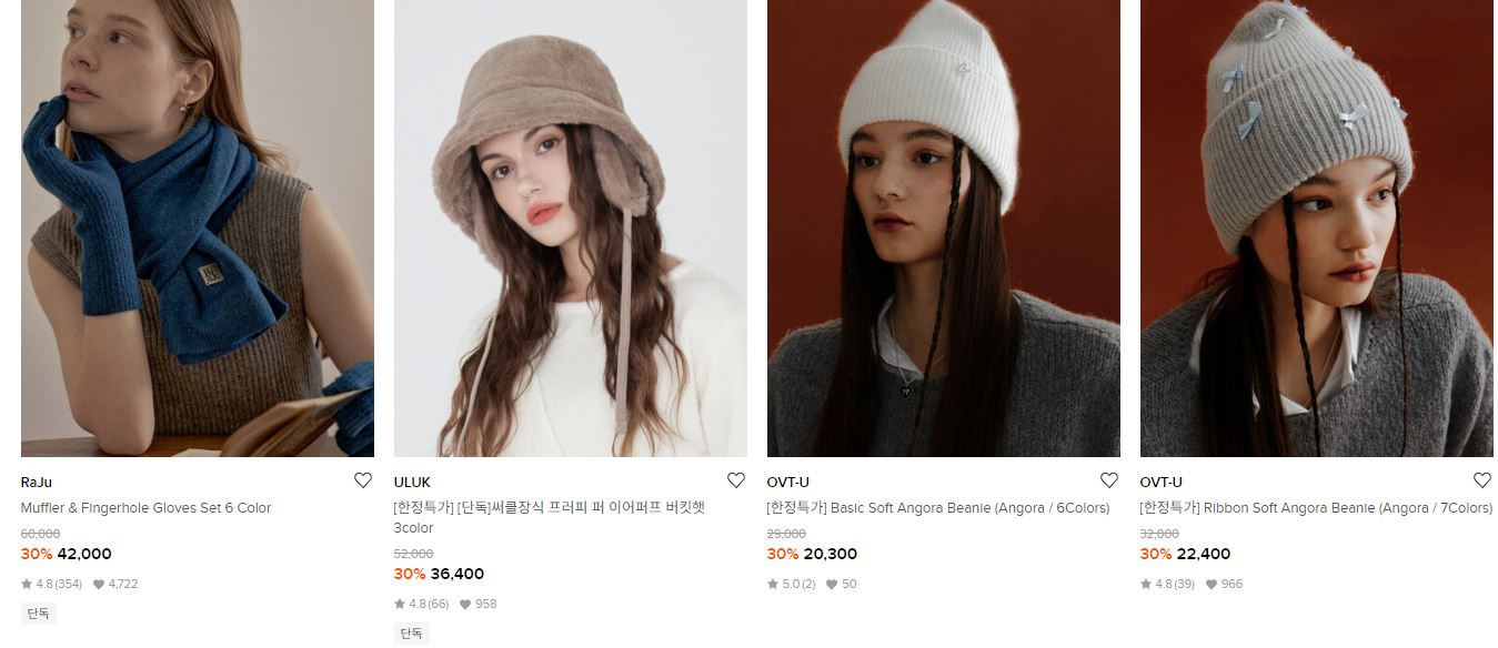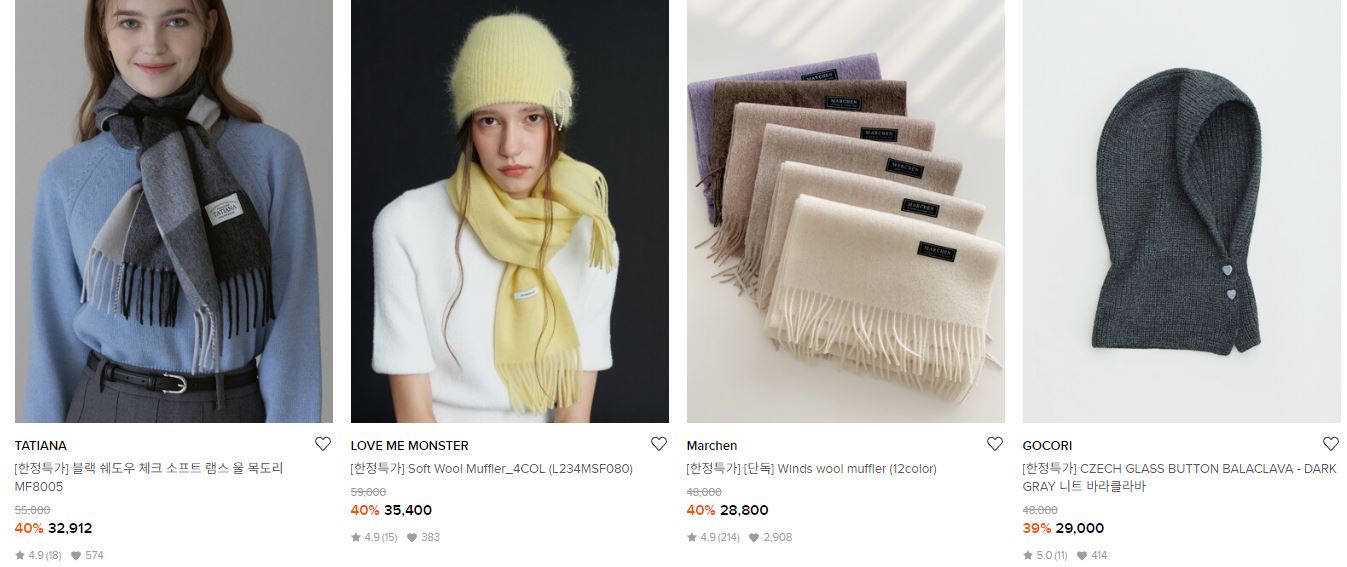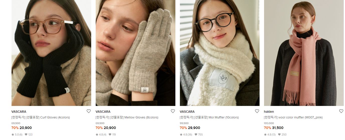 할인 품목 : 머플러, 장갑, 모자 등