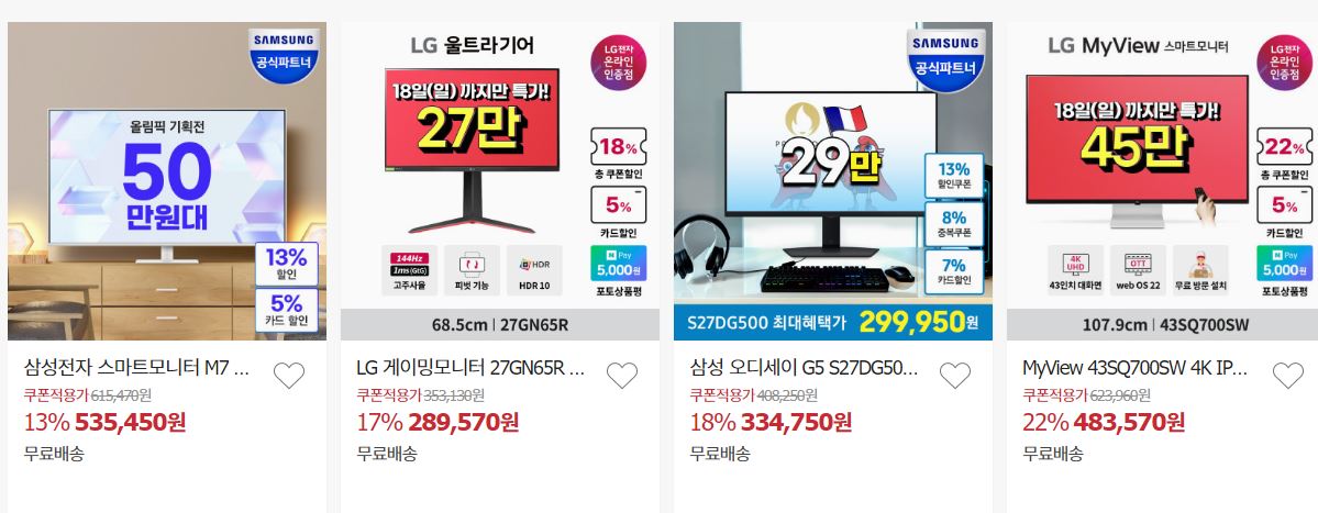 할인 품목 : 모니터, 태블릿 등