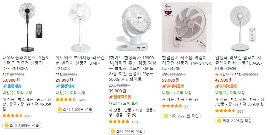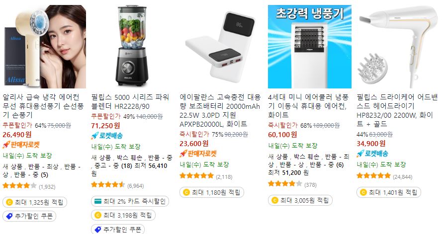 할인 품목 : 에어프라이어. 선풍기, 보조배터리 등