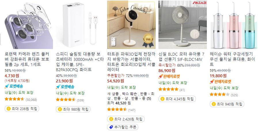 쿠팡 다양한 제품을 할인 판매하네요.