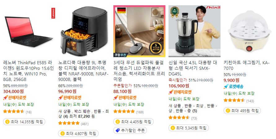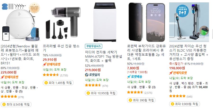 쿠팡 다양한 제품을 할인 판매하네요.