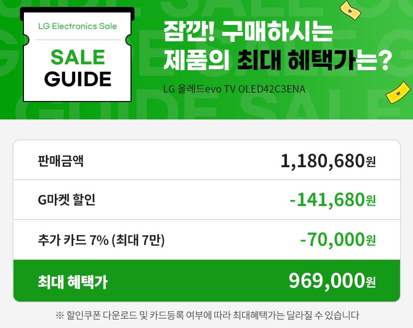 LG 올레드 evo 게이밍 TV OLED42C3ENA 105cm을 할인 판매하네요.