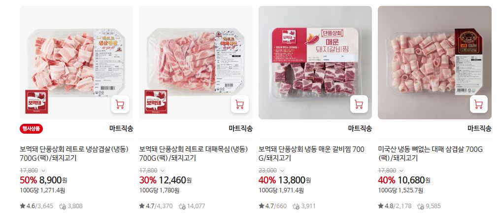 할인 품목 : 삼겹살, 목살 등