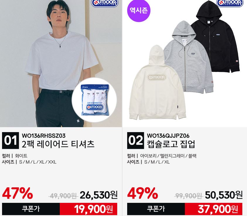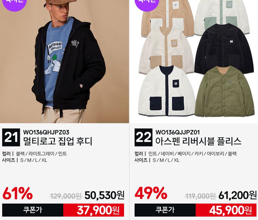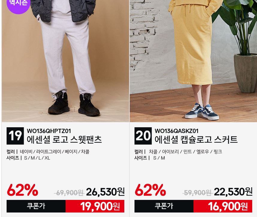 할인 품목 : 맨투맨, 후드티, 팬츠 등