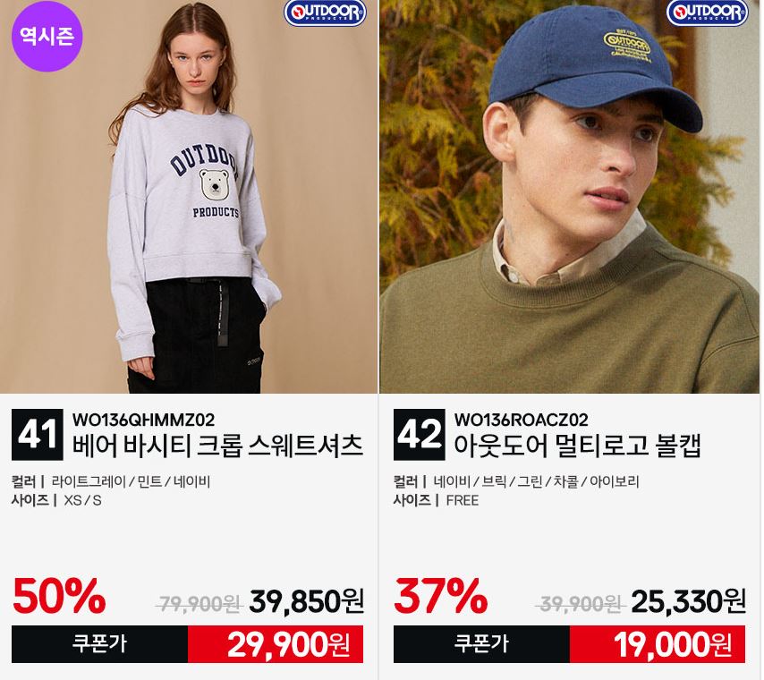 아웃도어프로덕츠 다양한 제품을 할인 판매하네요.