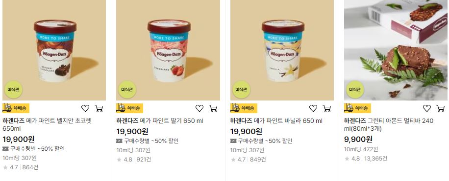 하겐다즈 다양한 제품을 할인 판매하네요.