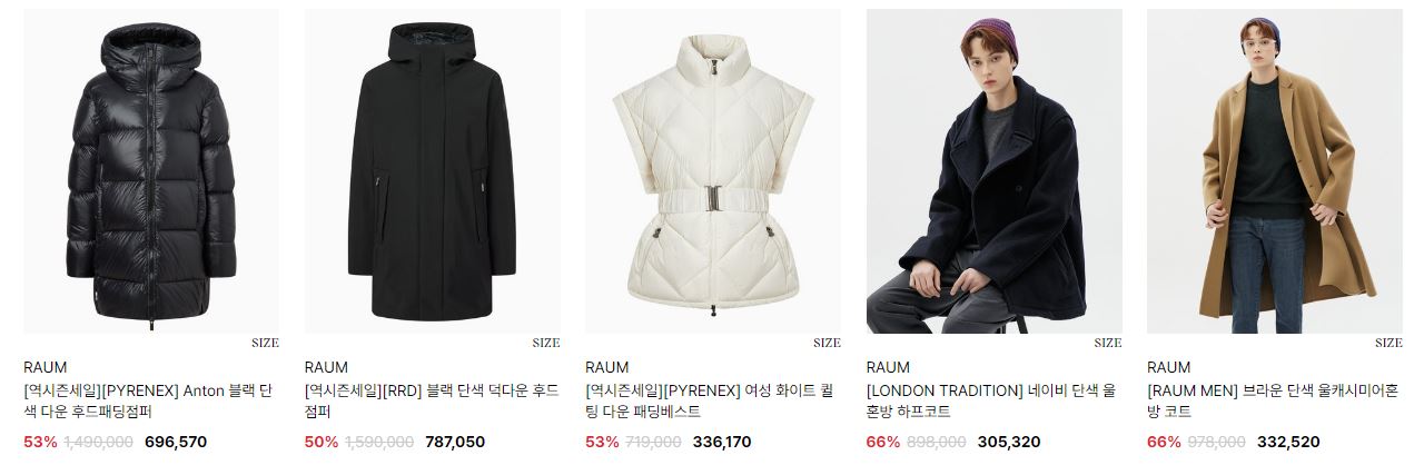 할인 품목 : 자켓, 맨투맨, 코트 등
