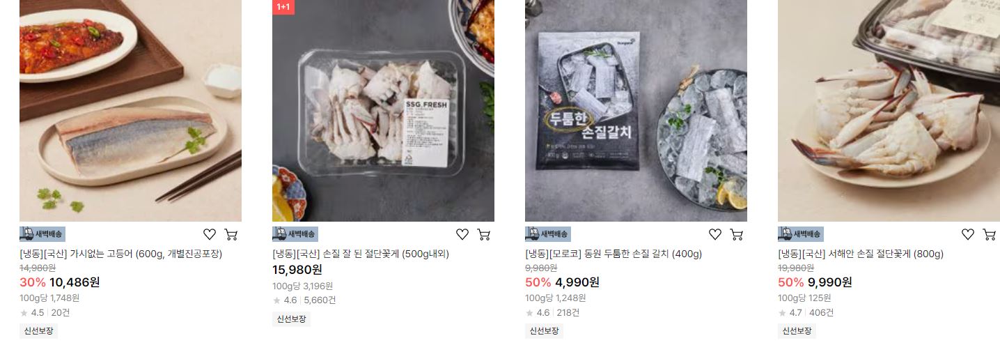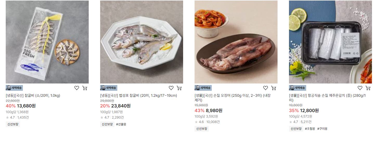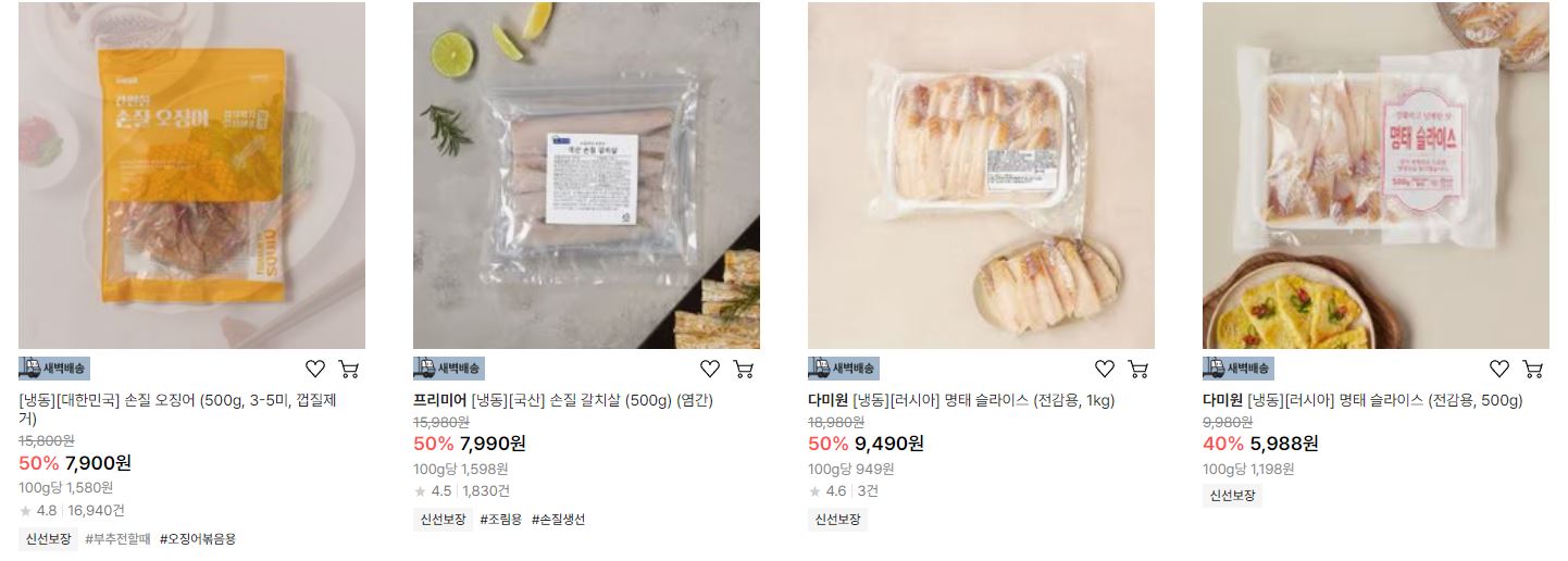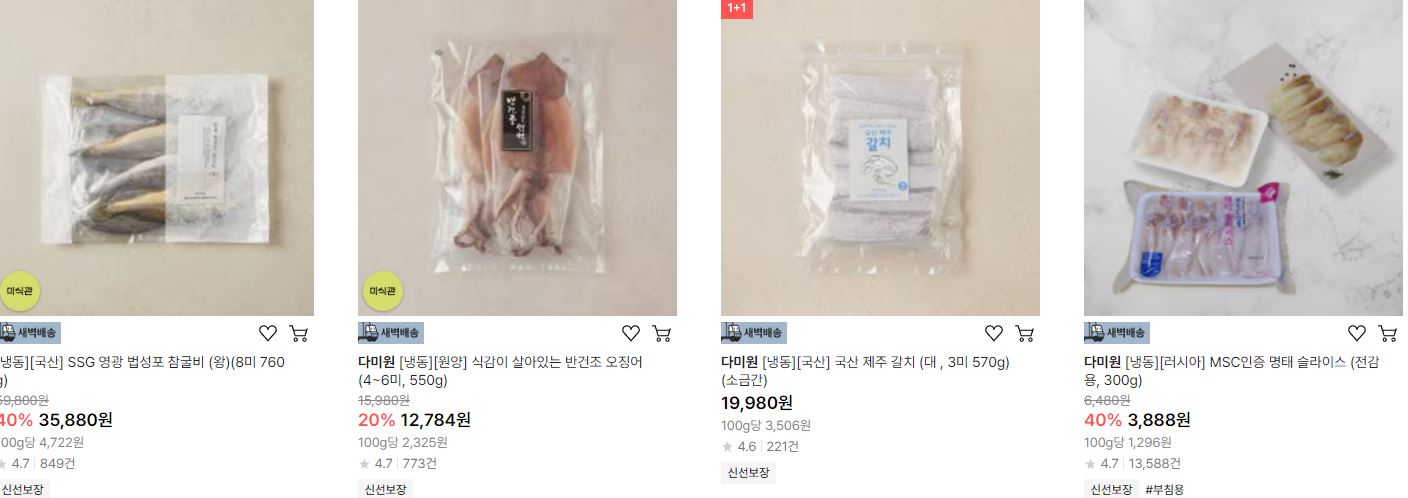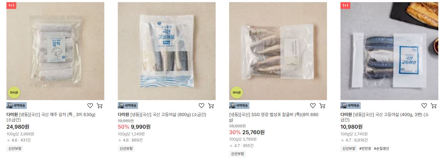 할인 품목 : 오징어, 갈치, 고등어 등