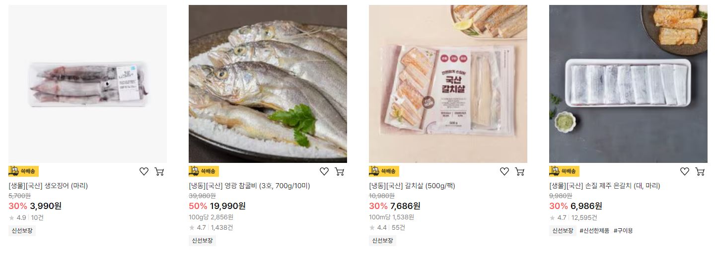 할인 품목 : 오징어, 갈치, 고등어 등