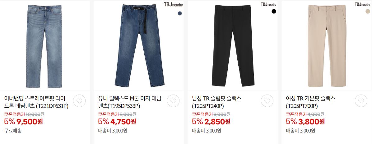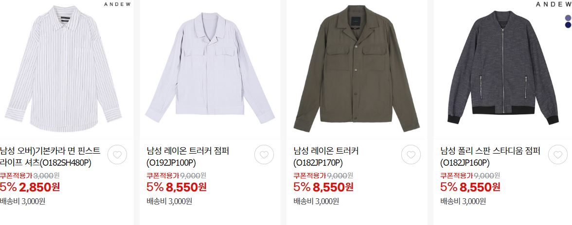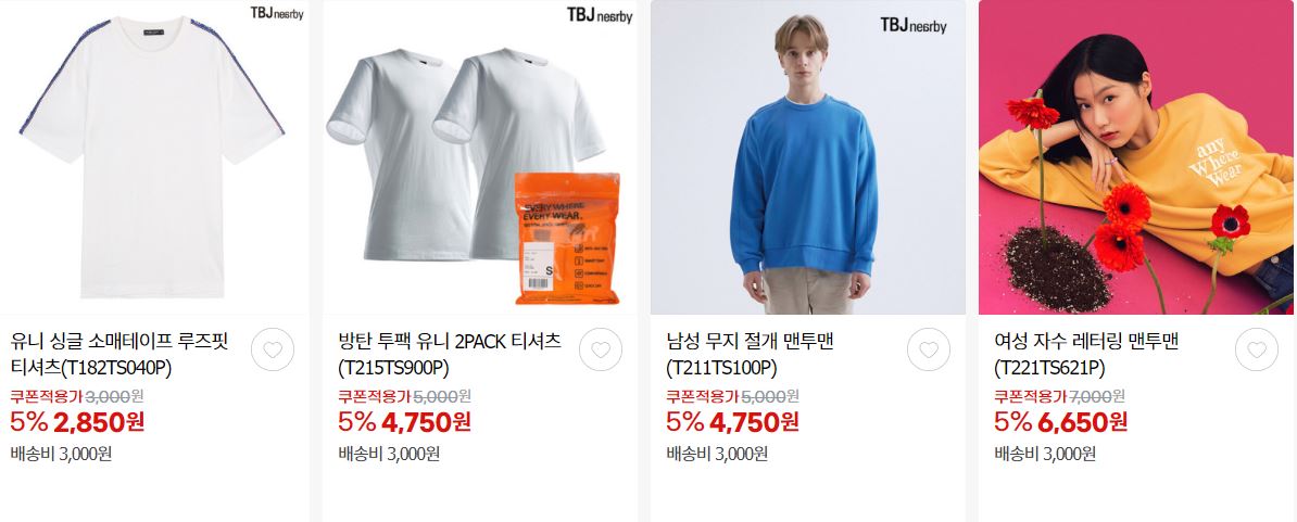 할인 품목 : 티셔츠, 자켓, 팬츠 등