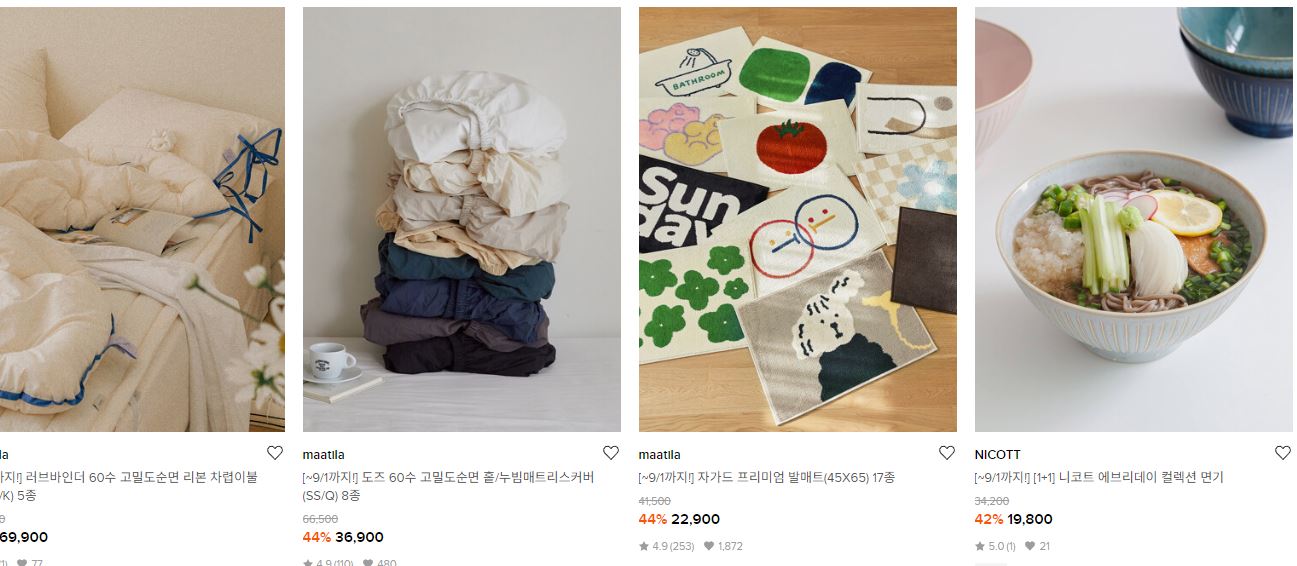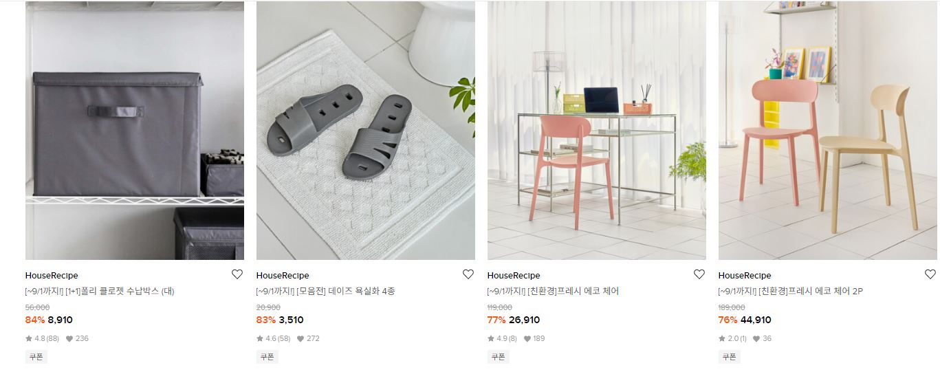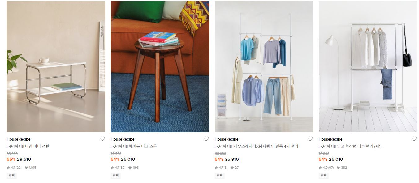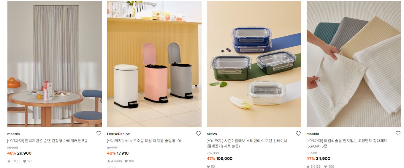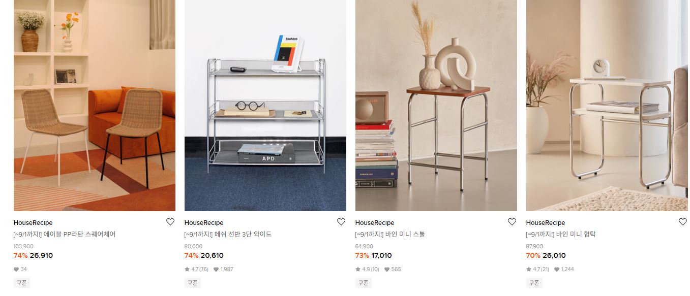 할인 품목 : 가구, 주방용품, 텀블러 등
