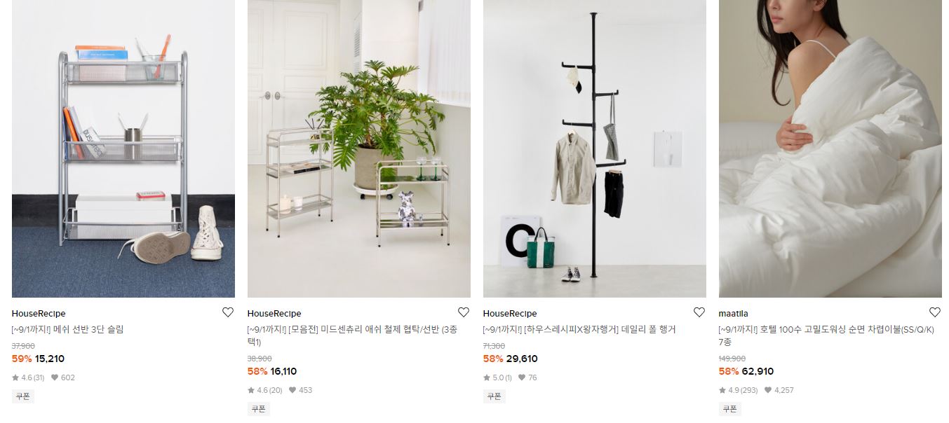 W컨셉 다양한 제품을 할인 판매하네요.