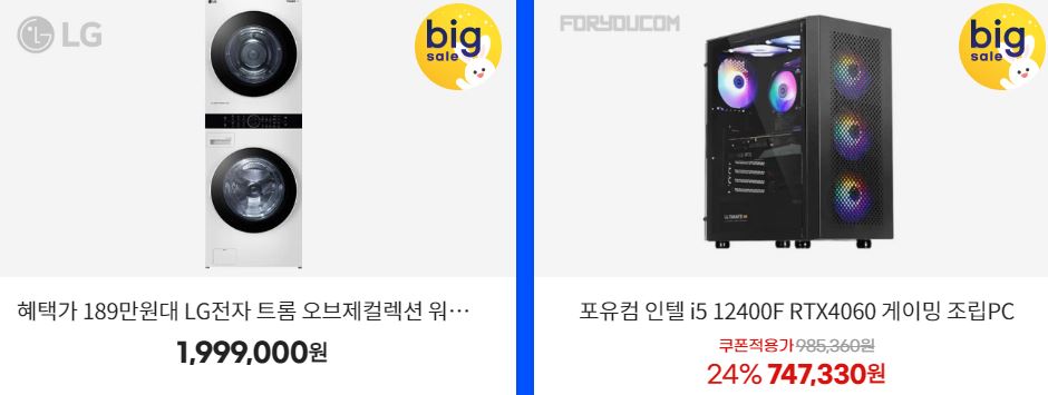 할인 품목 : 가전, 식품, 화장품 등