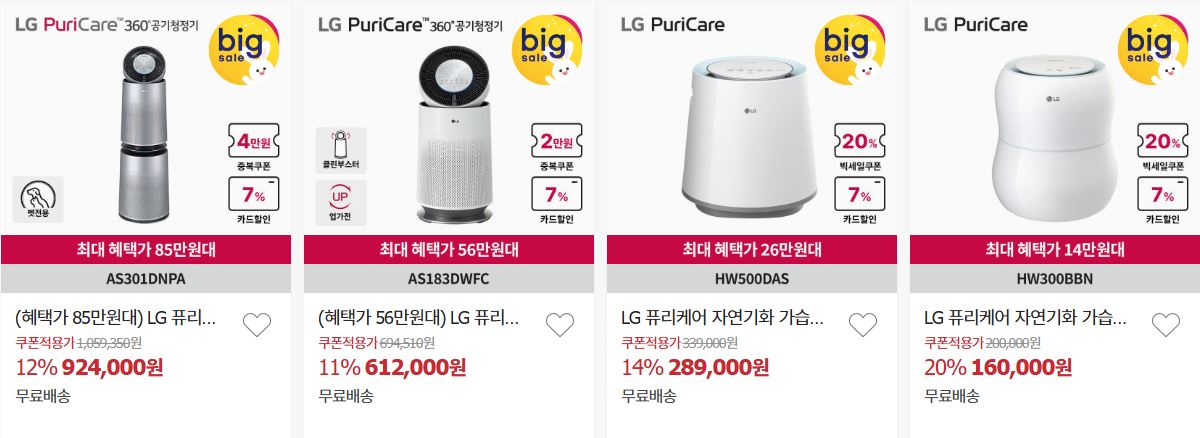 할인 품목 : 노트북, 모니터, 가습기, 청소기 등