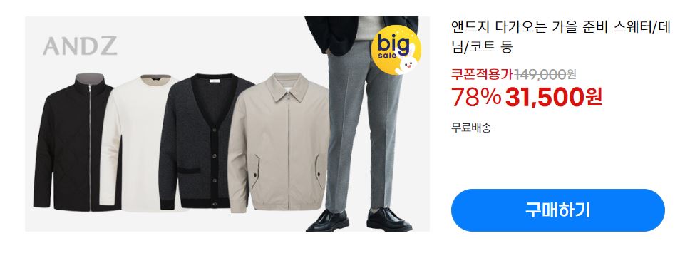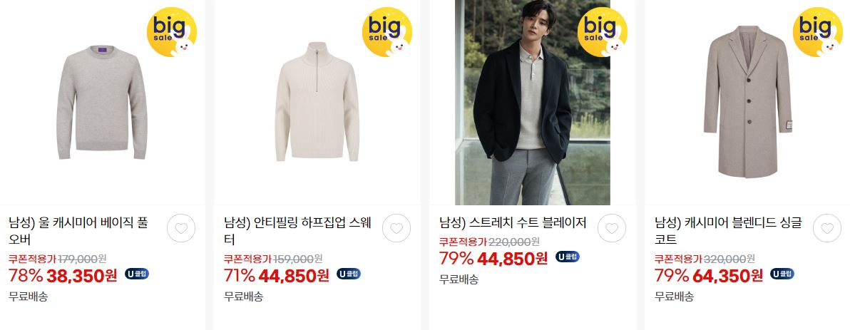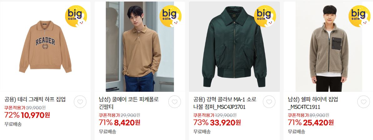 할인 품목 : 자켓, 티셔츠, 코트, 팬츠 등