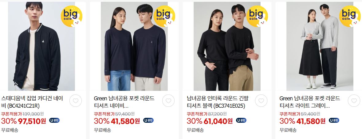 할인 품목 : 자켓, 셔츠, 팬츠, 티셔츠 등