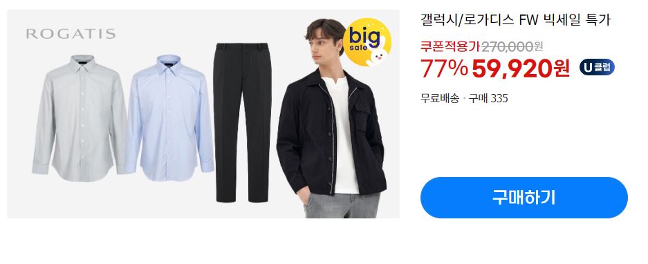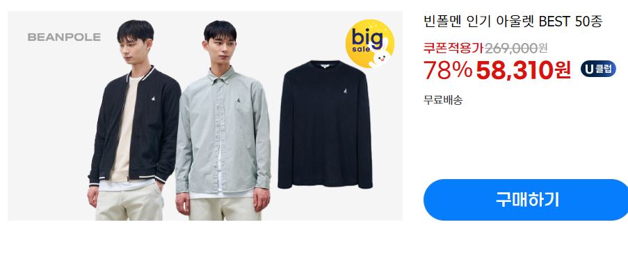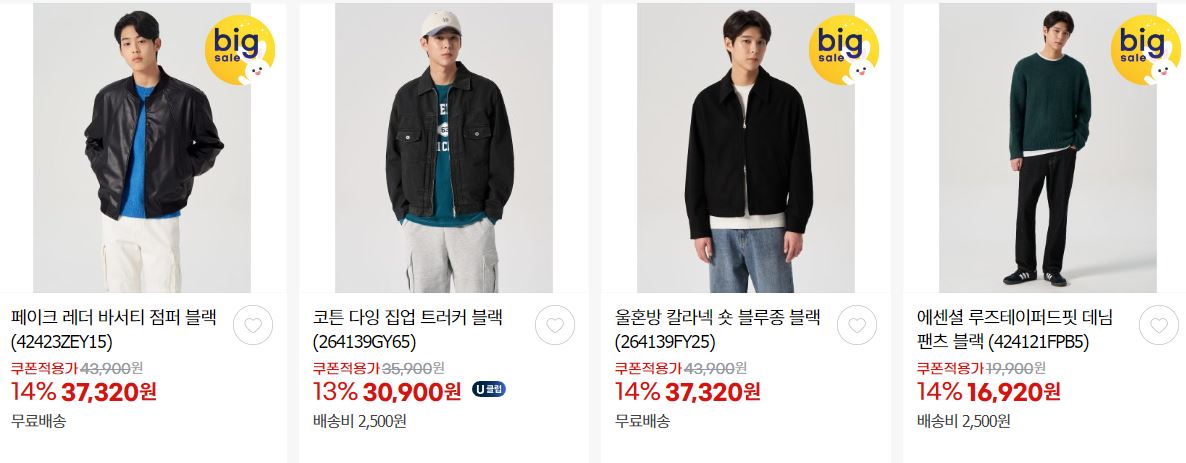 할인 품목 : 자켓, 셔츠, 팬츠, 티셔츠 등