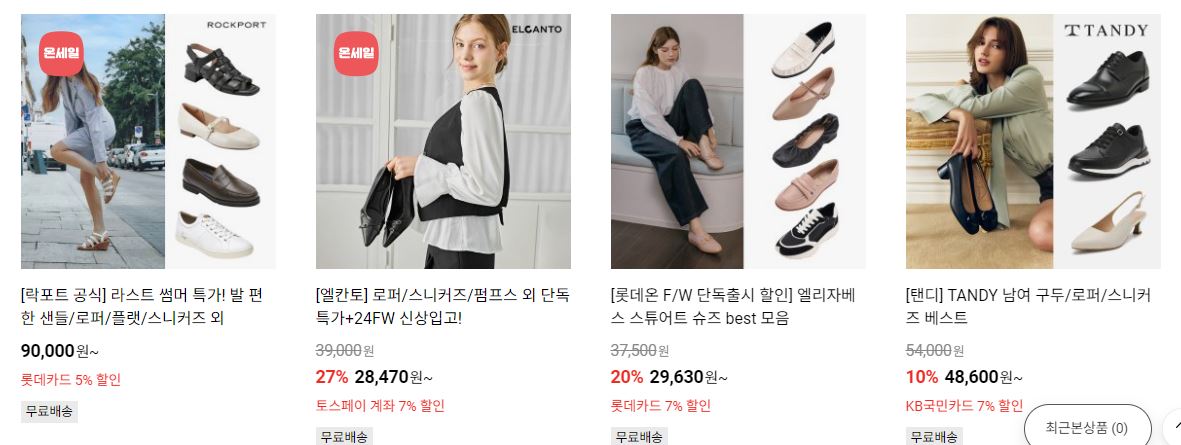 할인 품목 : 식품, 화장품, 신발 등
