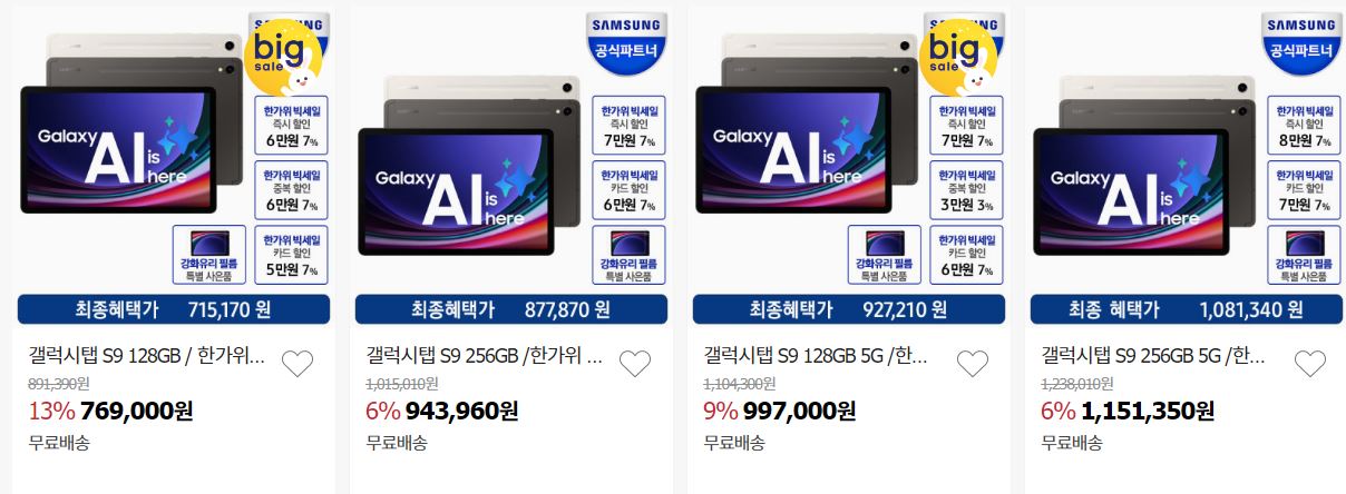 삼성 갤럭시 다양한 제품을 할인 판매하네요.