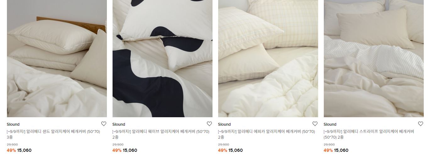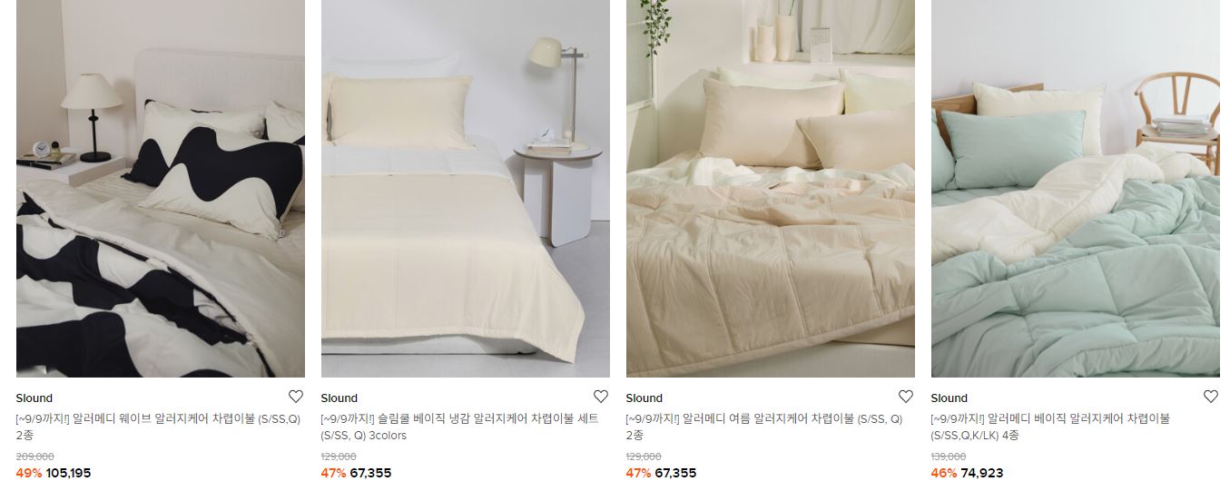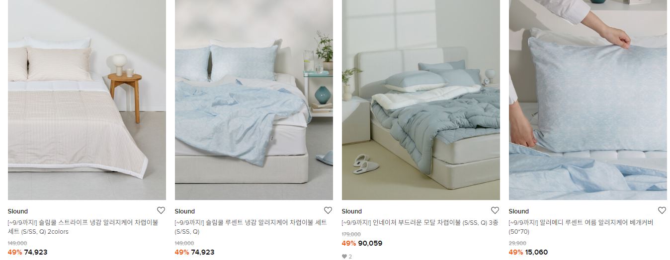 할인 품목 : 이불, 베개 등