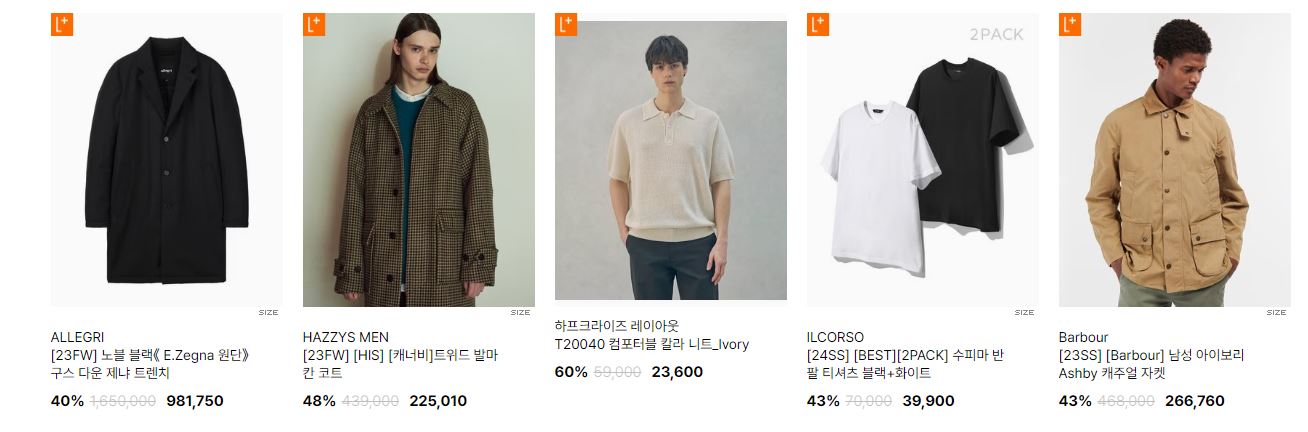 할인 품목 : 의류, 신발, 가방 등