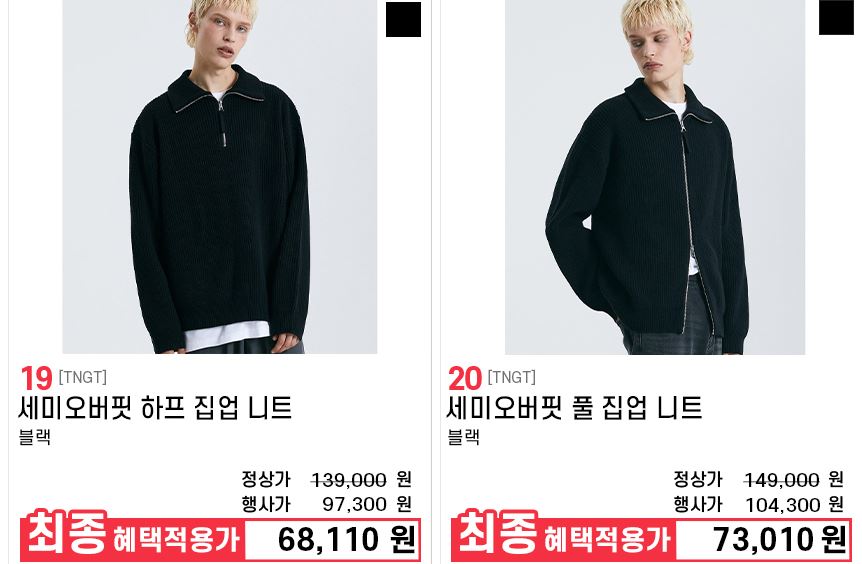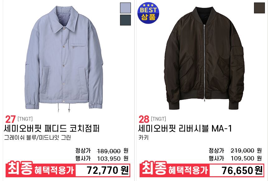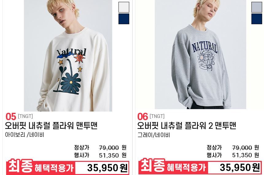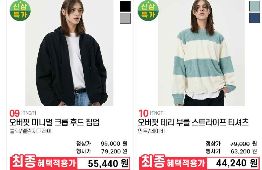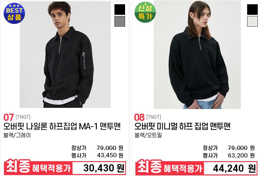 할인 품목 : 후드티, 맨투맨, 자켓 등