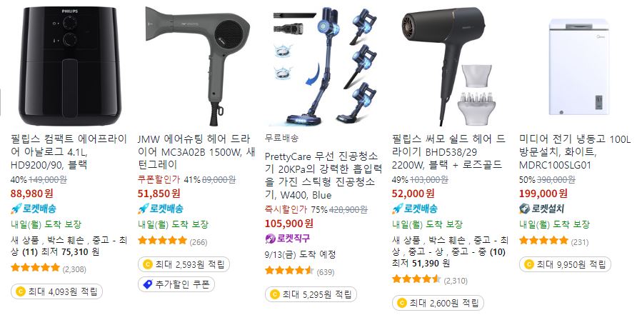 쿠팡 다양한 제품을 ㅎ라인 판매하네요.