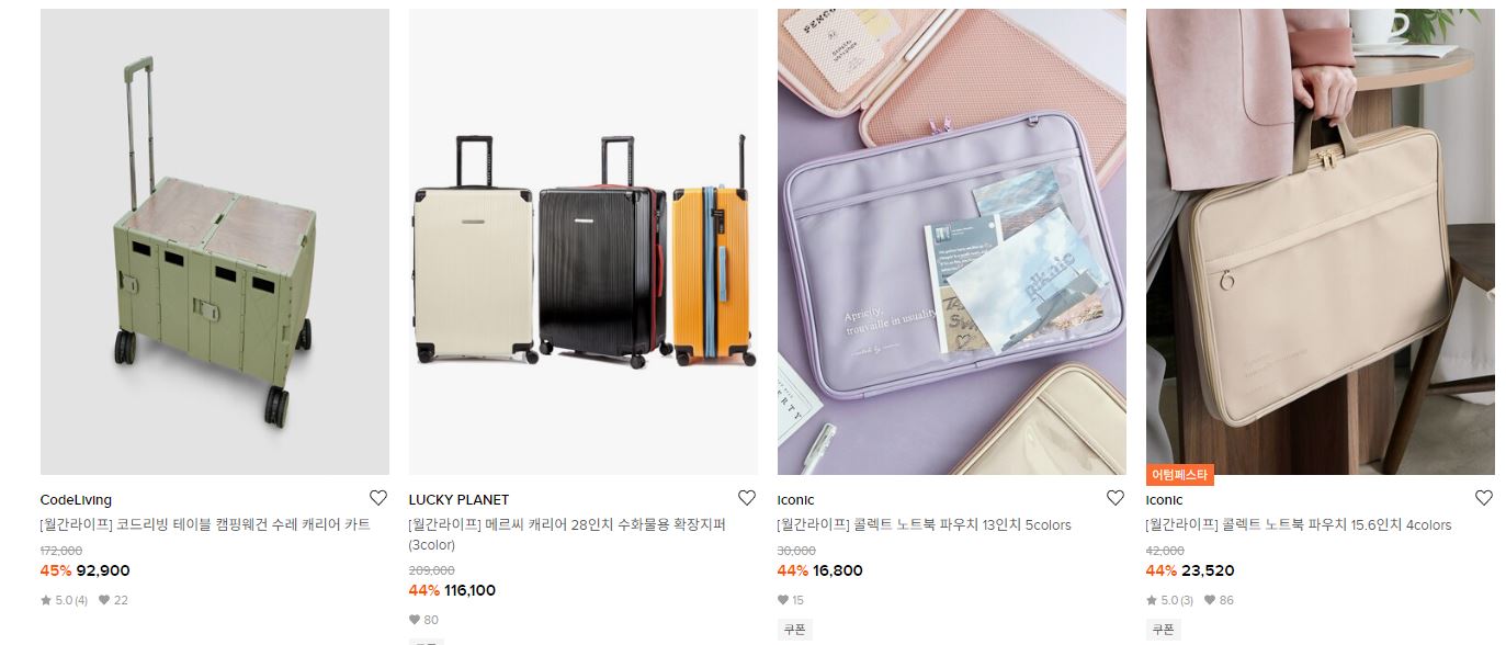 할인 품목 : 캐리어, 텀블러, 파우치 등