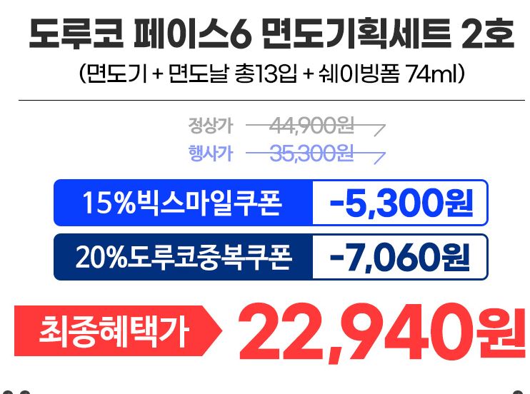 도루코 페이스6 면도기세트 2호 할인 정보 포스팅입니다.