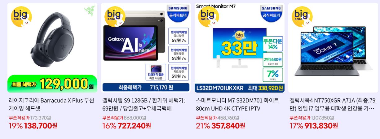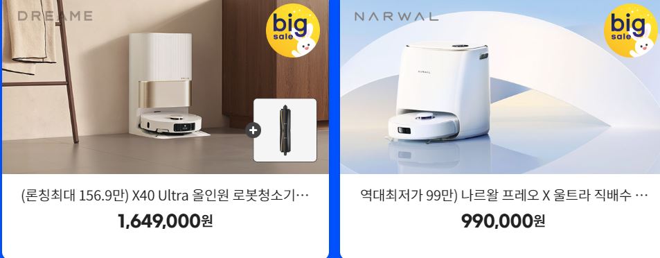 할인 품목 : 로봇청소기, 노트북, 키보드 등