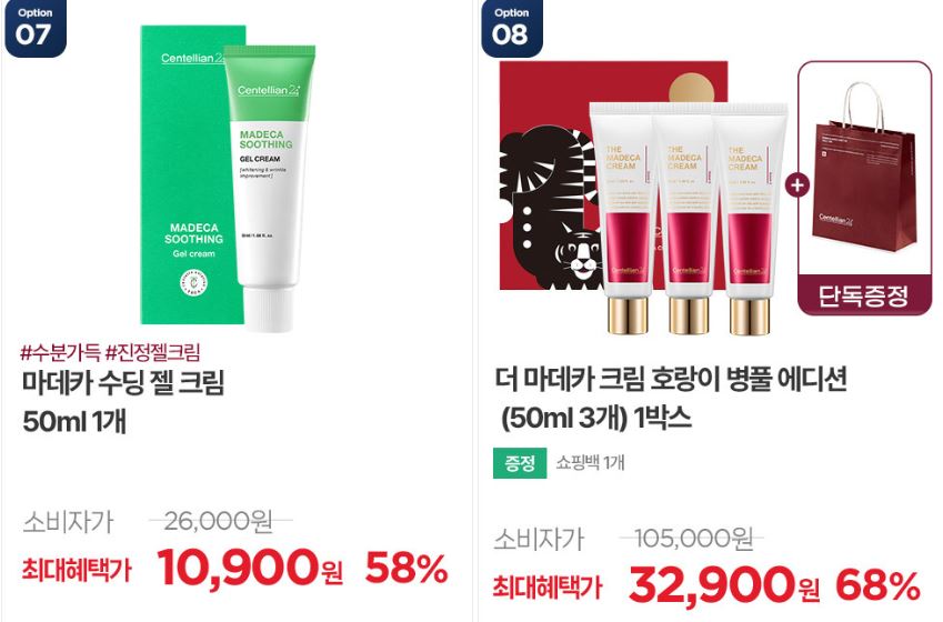 할인 품목 : 마데카크림, 앰플 등