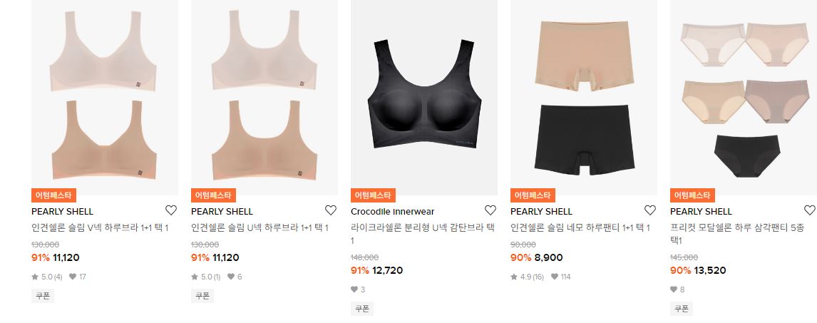 할인 품목 : 브라, 팬티 등