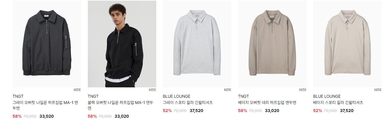 할인 품목 : 자켓, 맨투맨, 니트 등