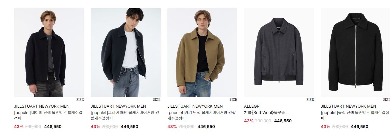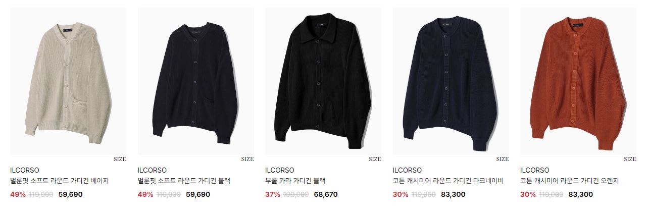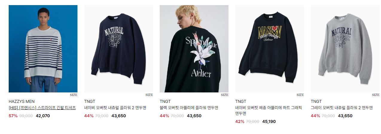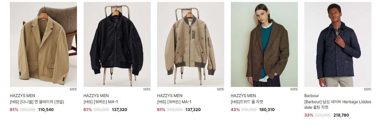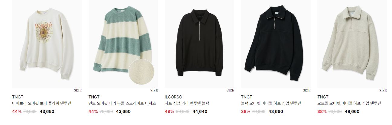 할인 품목 : 자켓, 맨투맨, 니트 등