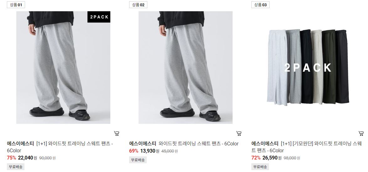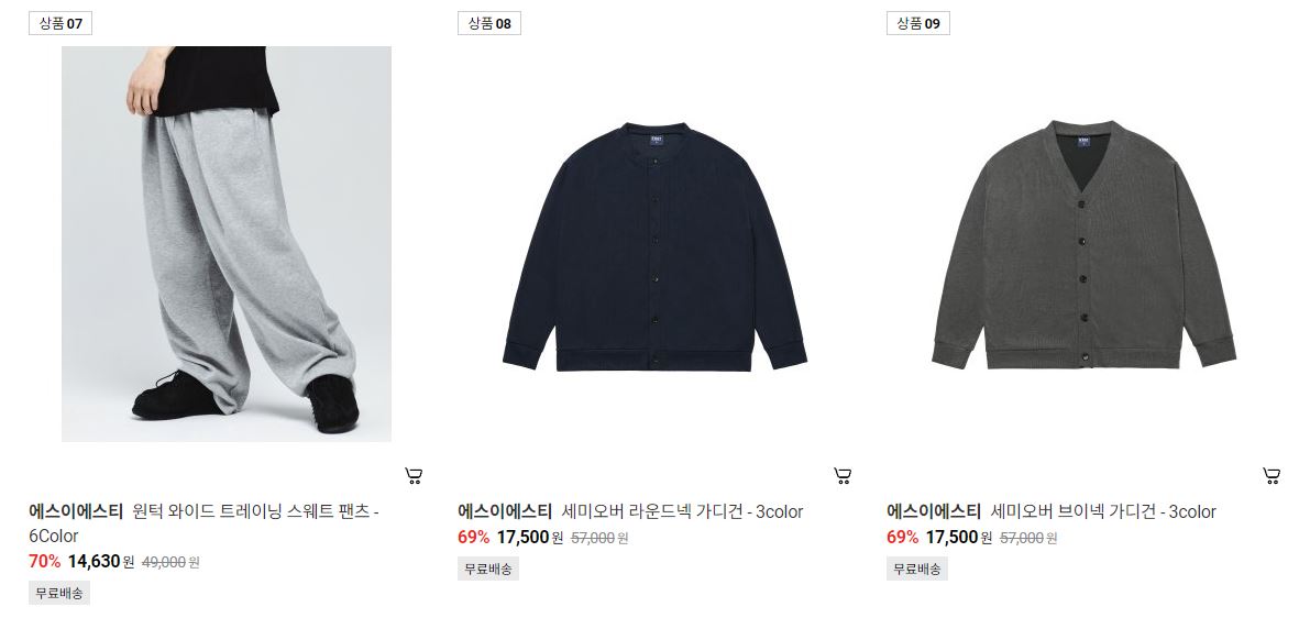 할인 품목 : 가디건, 맨투맨, 팬츠 등