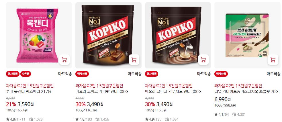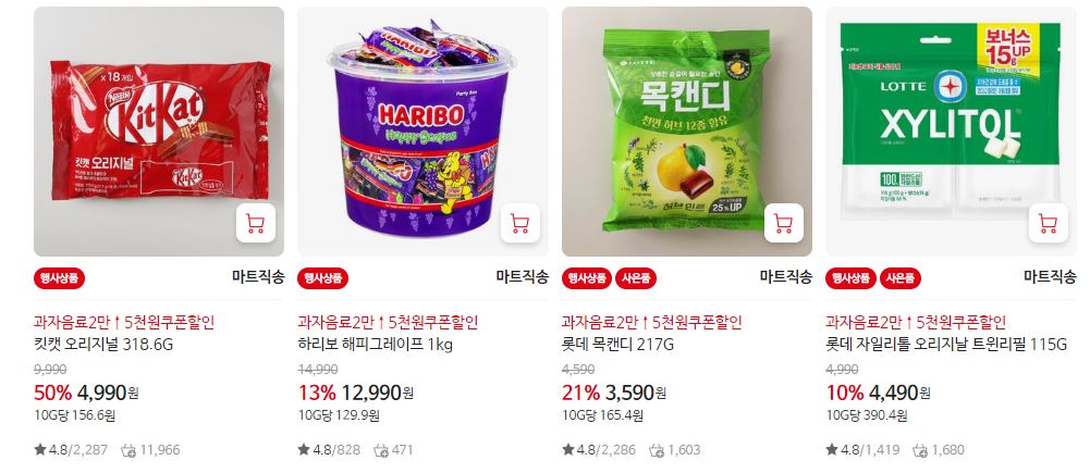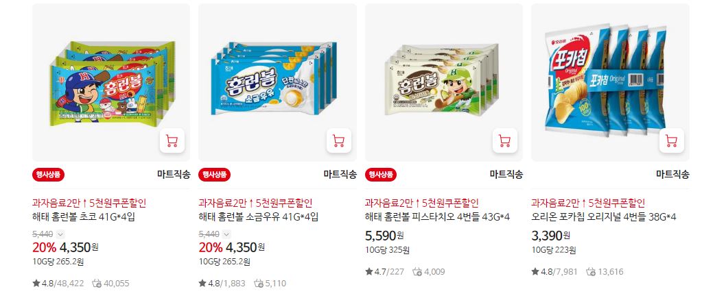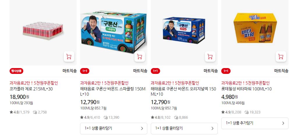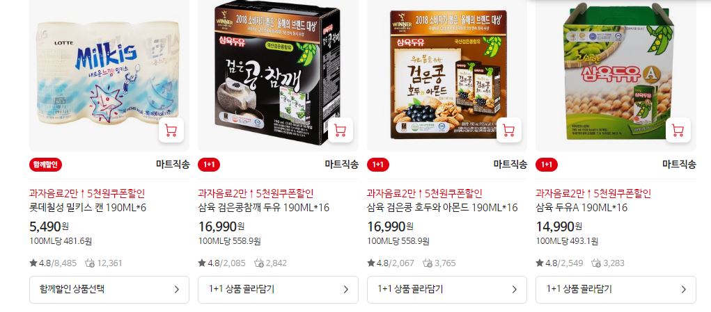할인 품목 : 홈런볼, 콜라, 두유 등