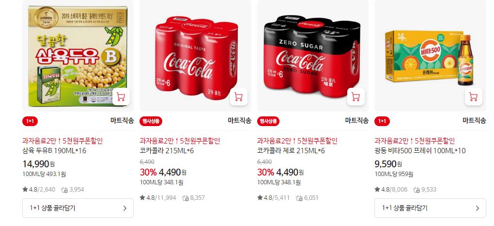 할인 품목 : 홈런볼, 콜라, 두유 등