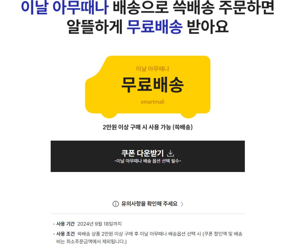 이마트몰 이날 아무때나 배송으로 쓱배송 주문하면 무료배송 이벤트를 진행하네요.