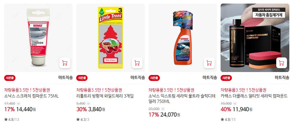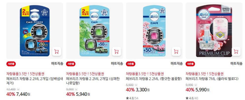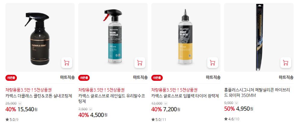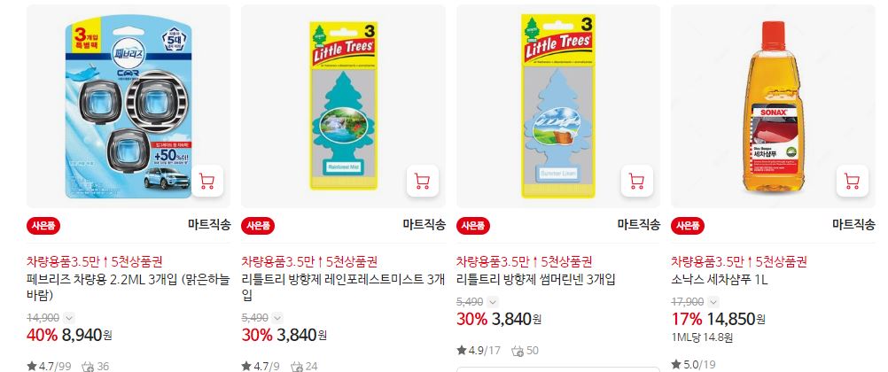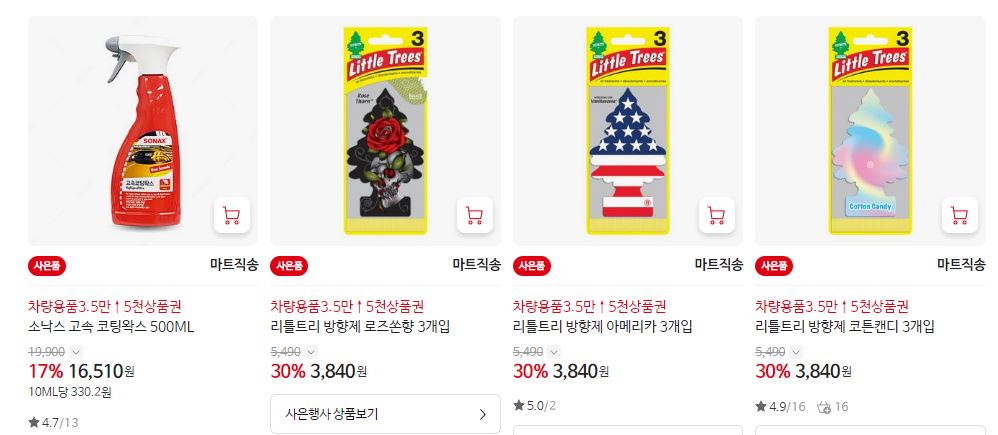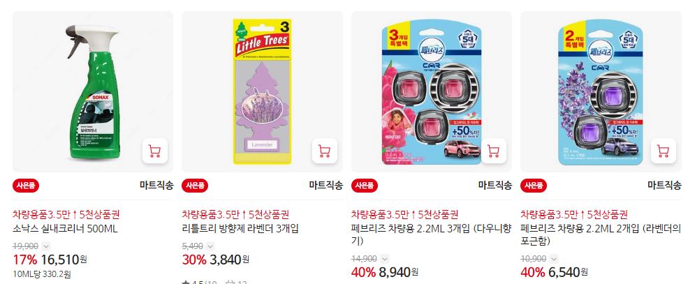 할인 품목 : 방향제, 클리너, 와이퍼 등