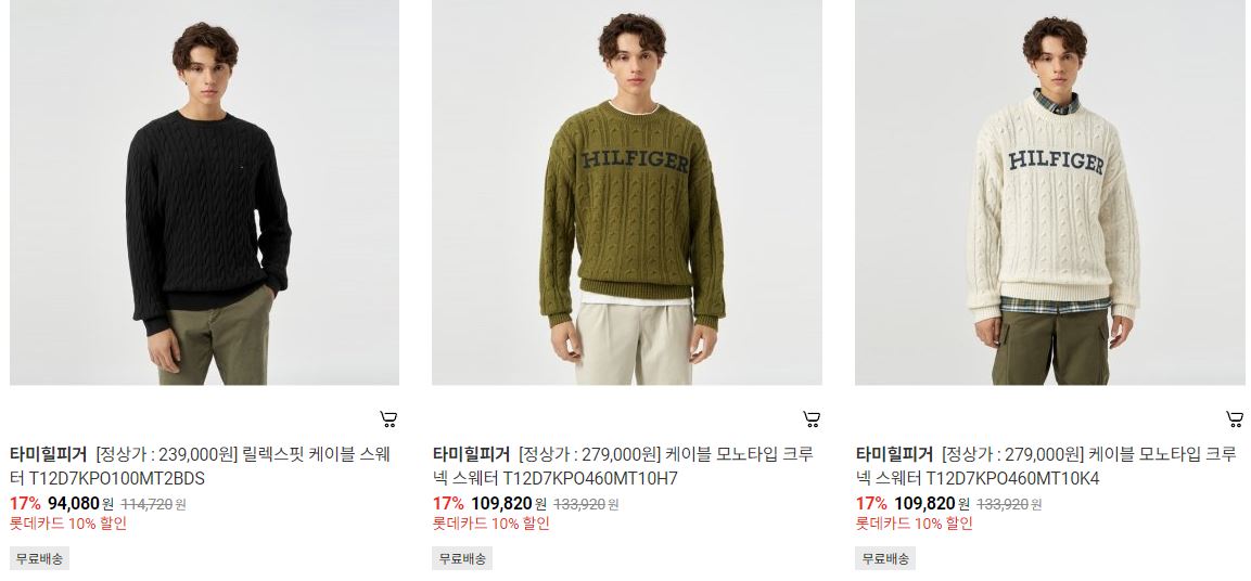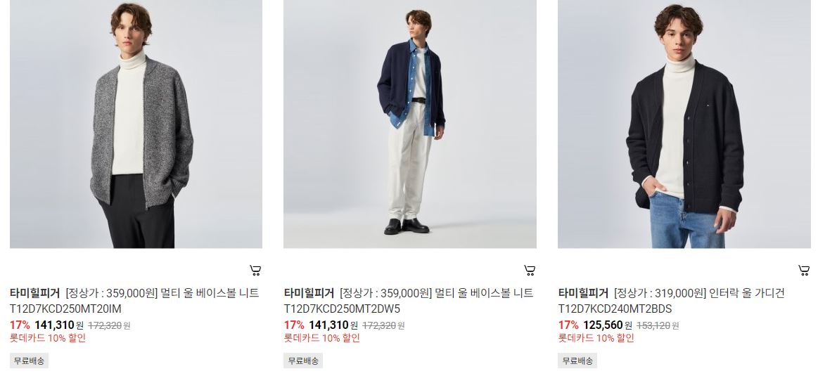 할인 품목 : 니트, 맨투맨, 가디건 등