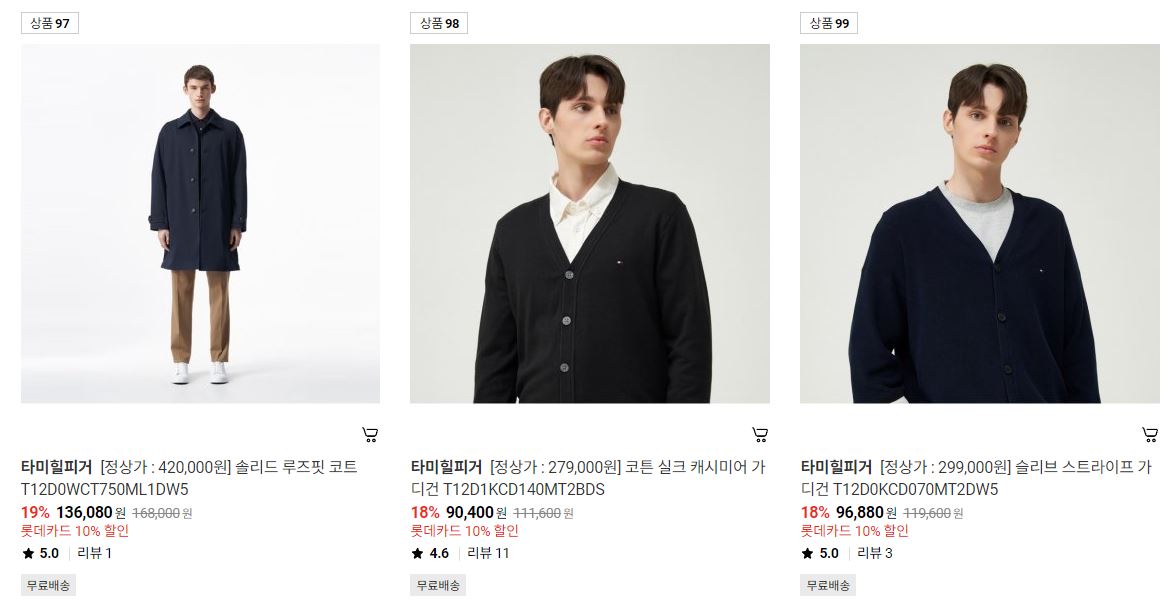 타미힐피거 다양한 제품을 할인 판매하네요.